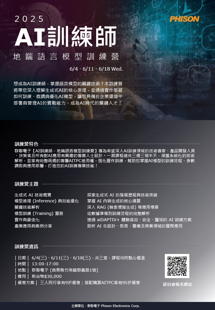 群聯電子的 aiDAPTIV+ 方案,通過降低AI技術應用的門檻,讓更多企業和教育機構能夠享受AI技術帶來的效益。無論是提升企業運營效率,還是培養未來的AI人才,aiDAPTIV+ 都是一個智慧且具成本效益的選擇。
